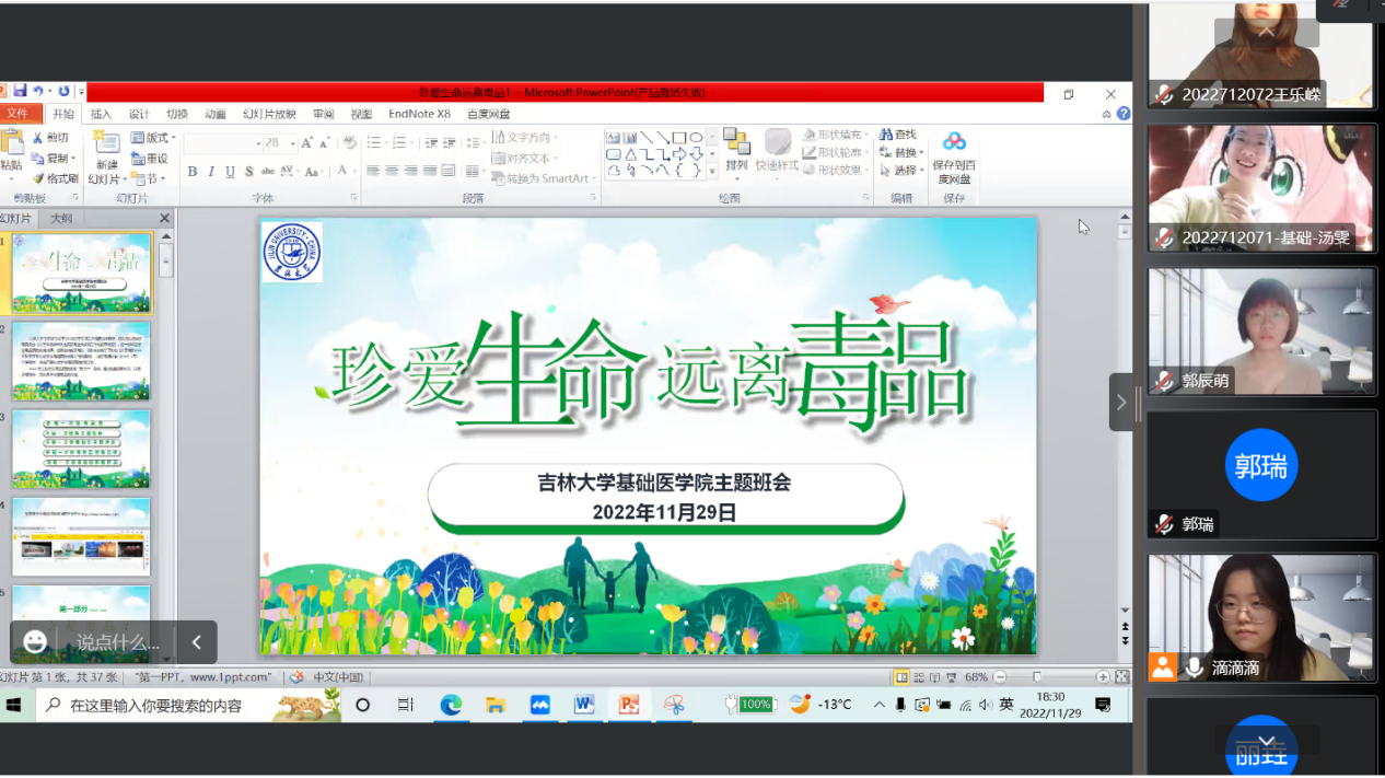 组织在校学生通过线上方式开展“珍爱生命、远离毒品”禁毒主题班会,普及毒品的概念、分类和特征,结合实际案例强调毒品的危害,通过播放新型毒品的科普视频了解新型毒品的伪装和危害,呼吁同学们抵制诱惑,坚决杜绝毒品。