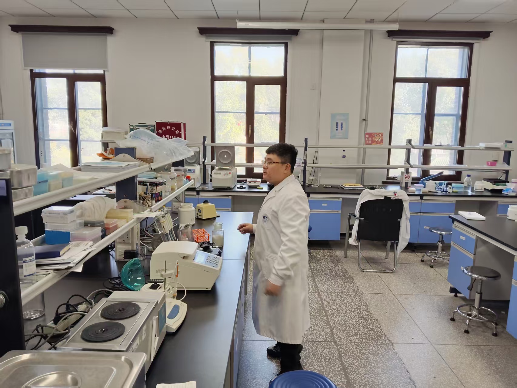 科研实验室、实验动物中心、基础医学教学实验中心等场所进行了实地踏查,重点对危化品的分类、储存及使用情况,高温高压仪器设备使用情况,水电气使用情况,消防器材配备情况,消防安全疏散通道安全情况,实验废弃物处置情况等进行逐一检查,对检查发现的隐患和问题进行现场反馈。