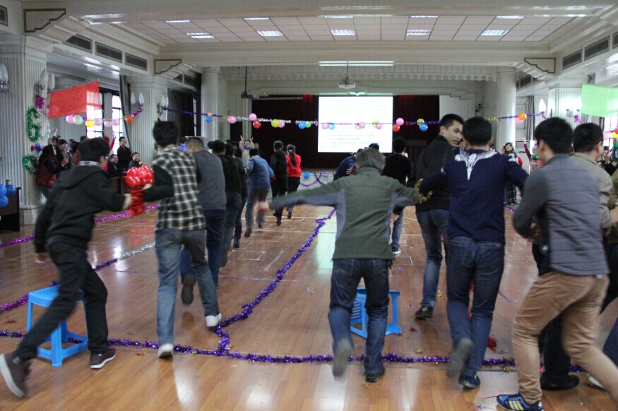 运动会在研究生充满活力的“小苹果”和“兔子舞”中拉开帷幕。比赛共分为四个队,在欢快的音乐声中,院领导带头,老师和研究生积极踊跃上场,第一个比赛项目“跳单、双圈”瞬间将现场气氛推向高潮。紧接着拍球接力、螃蟹背西瓜、摸石过河,心有灵犀,穿衣接力等项目使现场氛围异常活跃。场上师生队员们相互支持、相互鼓励,紧密配合,全力争先,动感十足的音乐更激发了参赛队员奋勇拼搏的斗志。场下观众在教师领队和学生领队的带领下,呐喊助威,掌声、加油声、口号声不绝于耳。期间穿插的游戏“五毛一块”令师生爆笑连连,一首“勇敢”让演唱者演绎得精彩至极,主持人幽默诙谐的话语为比赛也增添了许多亮色。