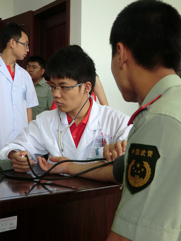 团委常委朱翠琳、张滨还分别为检查站的边防战士进行了健康知识普及和白求恩事迹宣讲,陈玉国、马天骄等高年级同学为战士们进行了身体检查。师生参观了检查站的荣誉室、办公场所和宿舍。