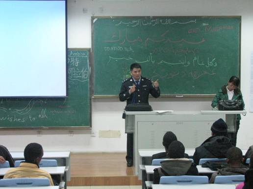 韩所长为留学生讲授了有关外国人来华须知及安全知识,从防火、防盗、交通安全等多角度对安全防范进行了生动的讲解,韩所长特别强调:紧急情况下不要慌乱,发生问题要及时报警。尤其是租房居住的留学生要与社区居民相互理解和尊重。留学生们认真听讲,并提出了许多问题,韩所长一一给予了解释。留学生们表示感谢桂林路派出所长期以来的关心与帮助,一定要遵守中国的法律和法规,维护好地方的安全与稳定。
