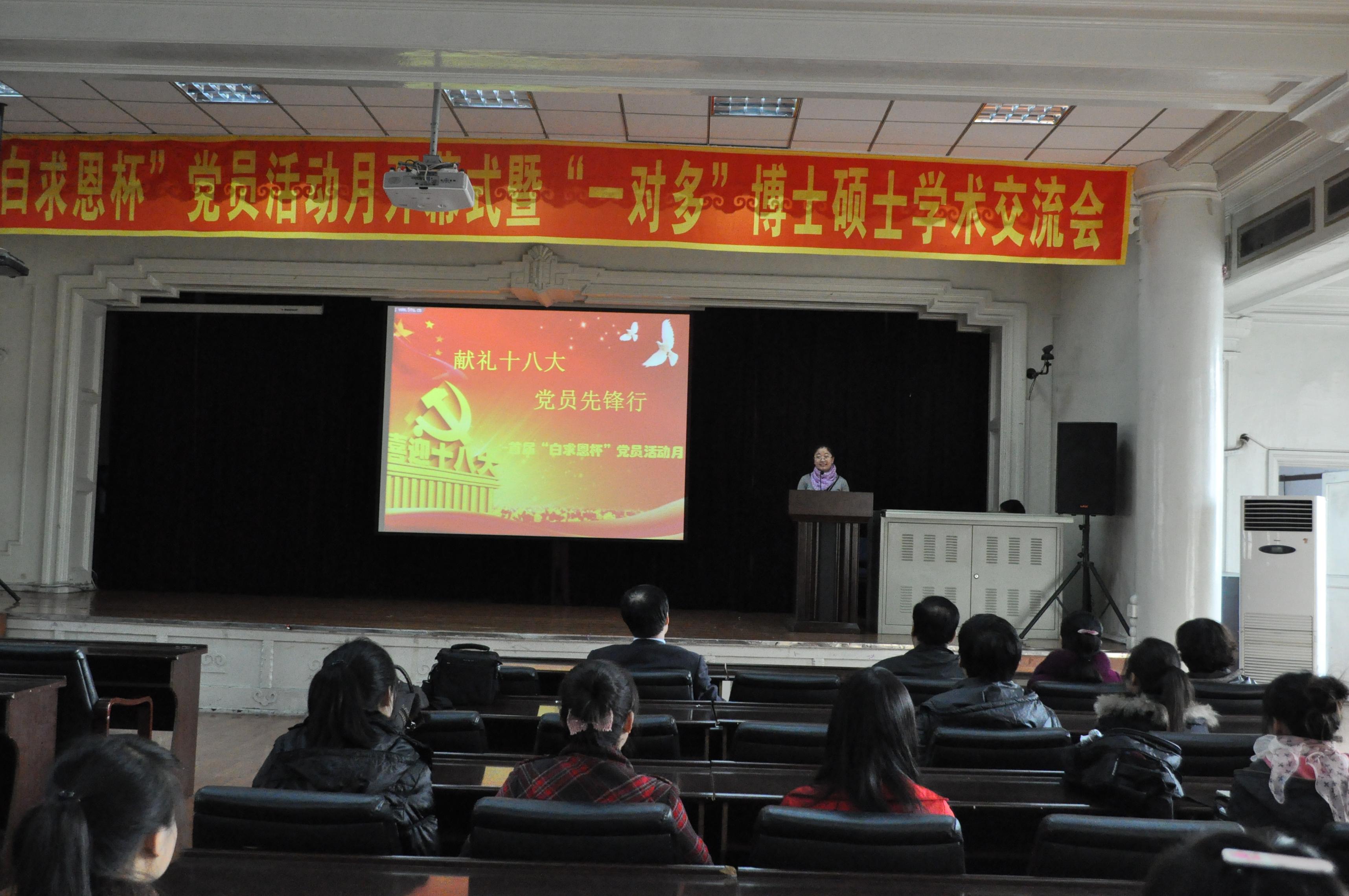 2012级硕士、博士党支部主办的“献礼十八大,党员先锋行”系列活动之首届“白求恩杯”党员活动月开幕式暨博士硕士学术交流会在基础楼二楼多功能学术报告厅举行。黑料不打烊