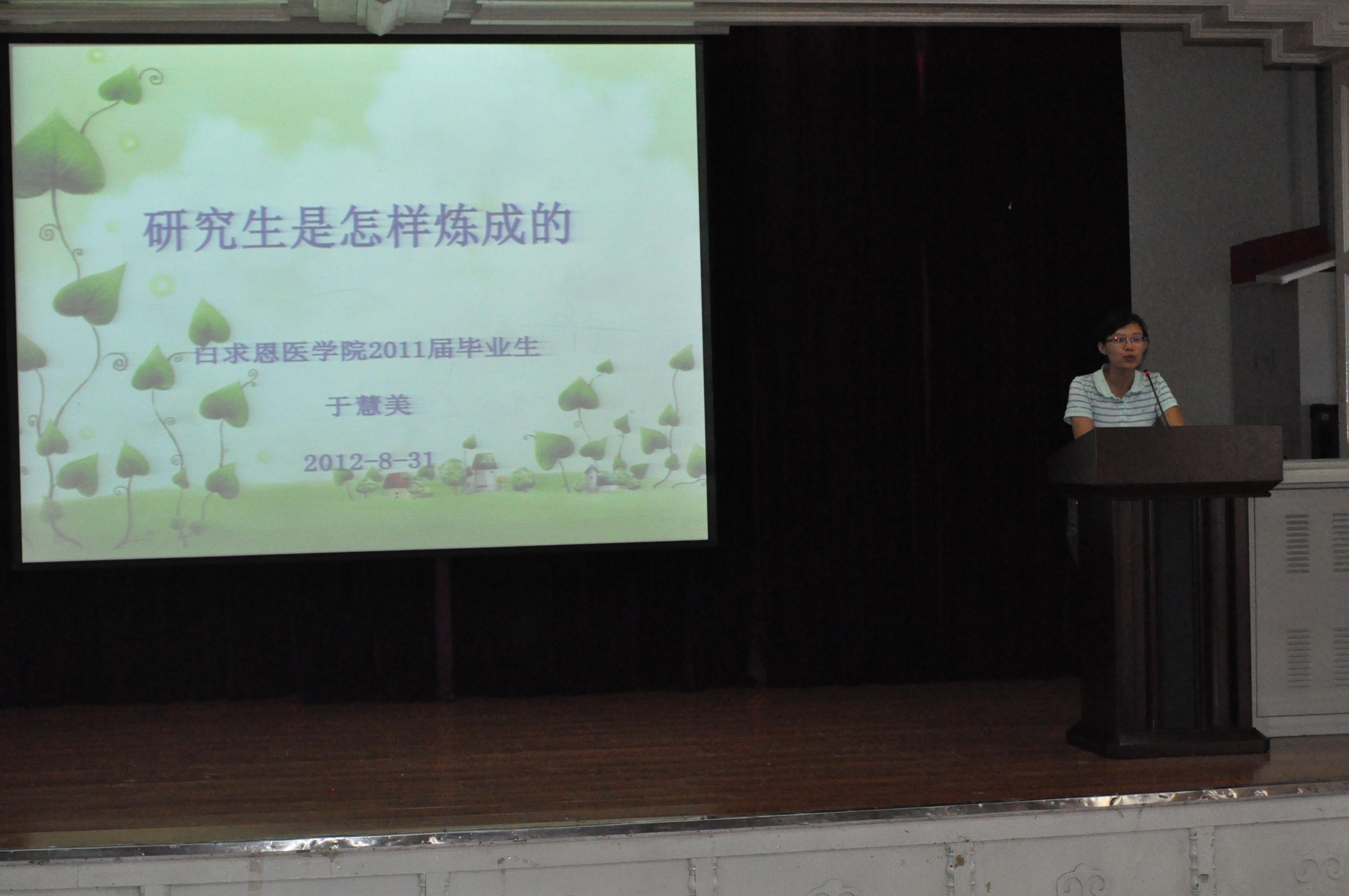 邀请了2011届优秀博士毕业生-—于慧美、徐慧在基础楼二楼多功能学术报告厅进行了研究生学术经验报告会。白求恩医黑料不打烊