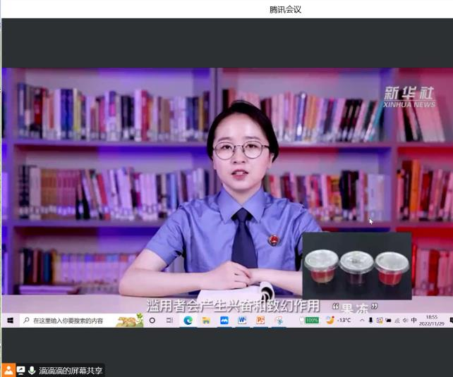 组织在校学生通过线上方式开展“珍爱生命、远离毒品”禁毒主题班会,普及毒品的概念、分类和特征,结合实际案例强调毒品的危害,通过播放新型毒品的科普视频了解新型毒品的伪装和危害,呼吁同学们抵制诱惑,坚决杜绝毒品。