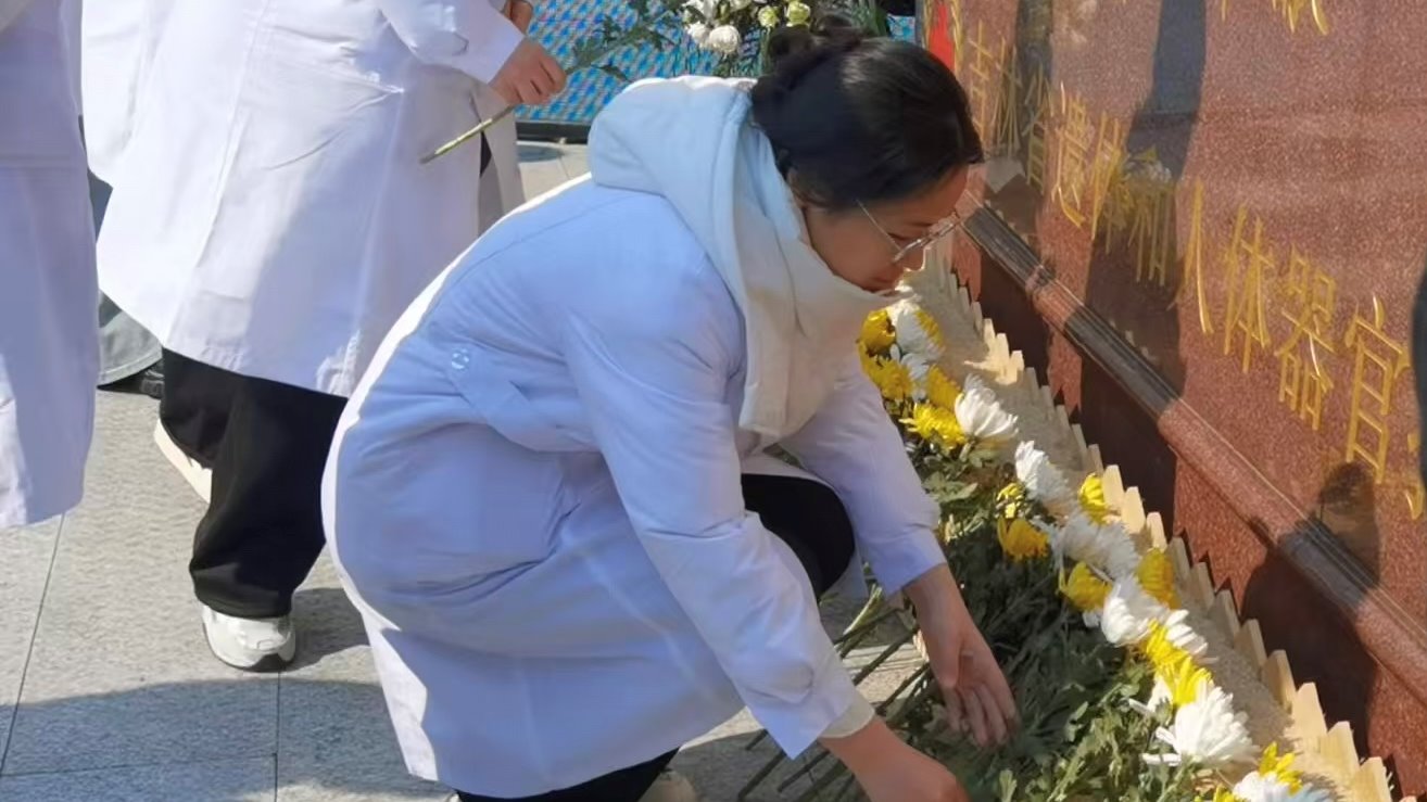 仪式尾声,全体人员依次向人体器官捐献者纪念碑敬献鲜花,寄托对捐献者无私精神的追思。学生志愿者代表刘博轩表示:"今天的仪式让我们深刻体会到,每一次捐献都是生命的接力。作为医学生,我们将以更加严谨的态度对待医学事业,让这份大爱在医学传承中永续流传。" 活动在全体人员默哀致敬中落下帷幕,生命的火种必将在爱与希望中散发最璀璨的光芒。