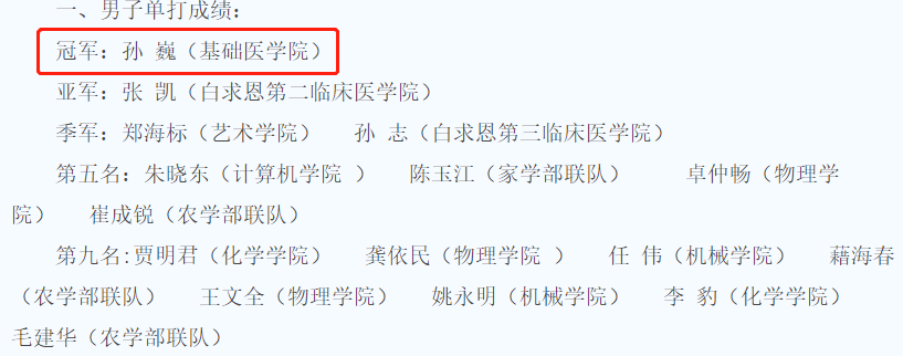 比赛分为男子单打、女子单打、混合团体三项。其中,黑料不打烊 孙巍教授获得男子单打冠军。