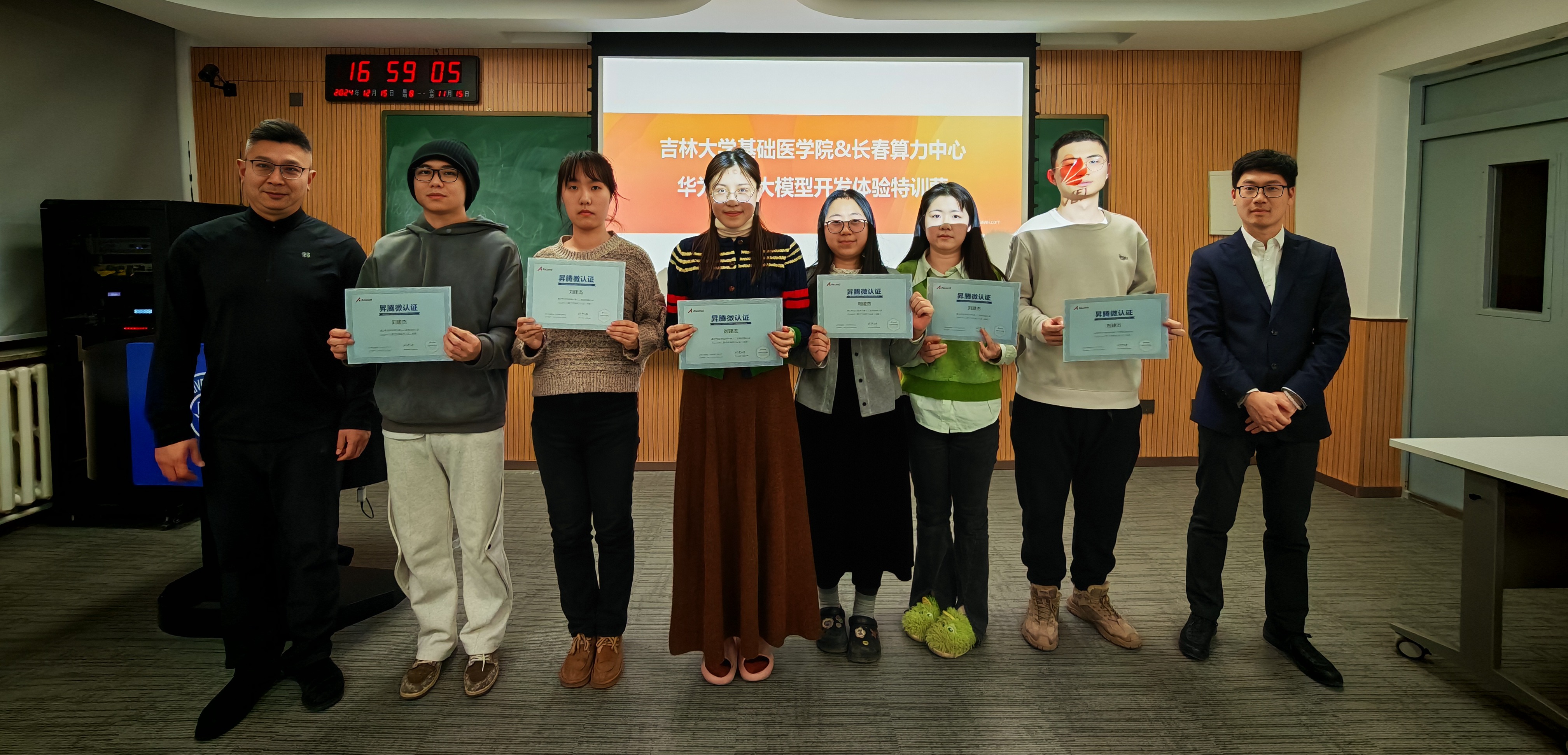 本次培训特邀了华为昇腾生态布道师杨德城先生主讲,课程主题为《AI创新实践培训—大模型开发实训》。课程内容丰富,包括主流大模型对比、大模型微调、知识增强、大模型评估以及大模型开发流程等。此外,培训还特别安排了语言大模型端到端实操环节,使学生们能够亲身体验AI技术的魅力。