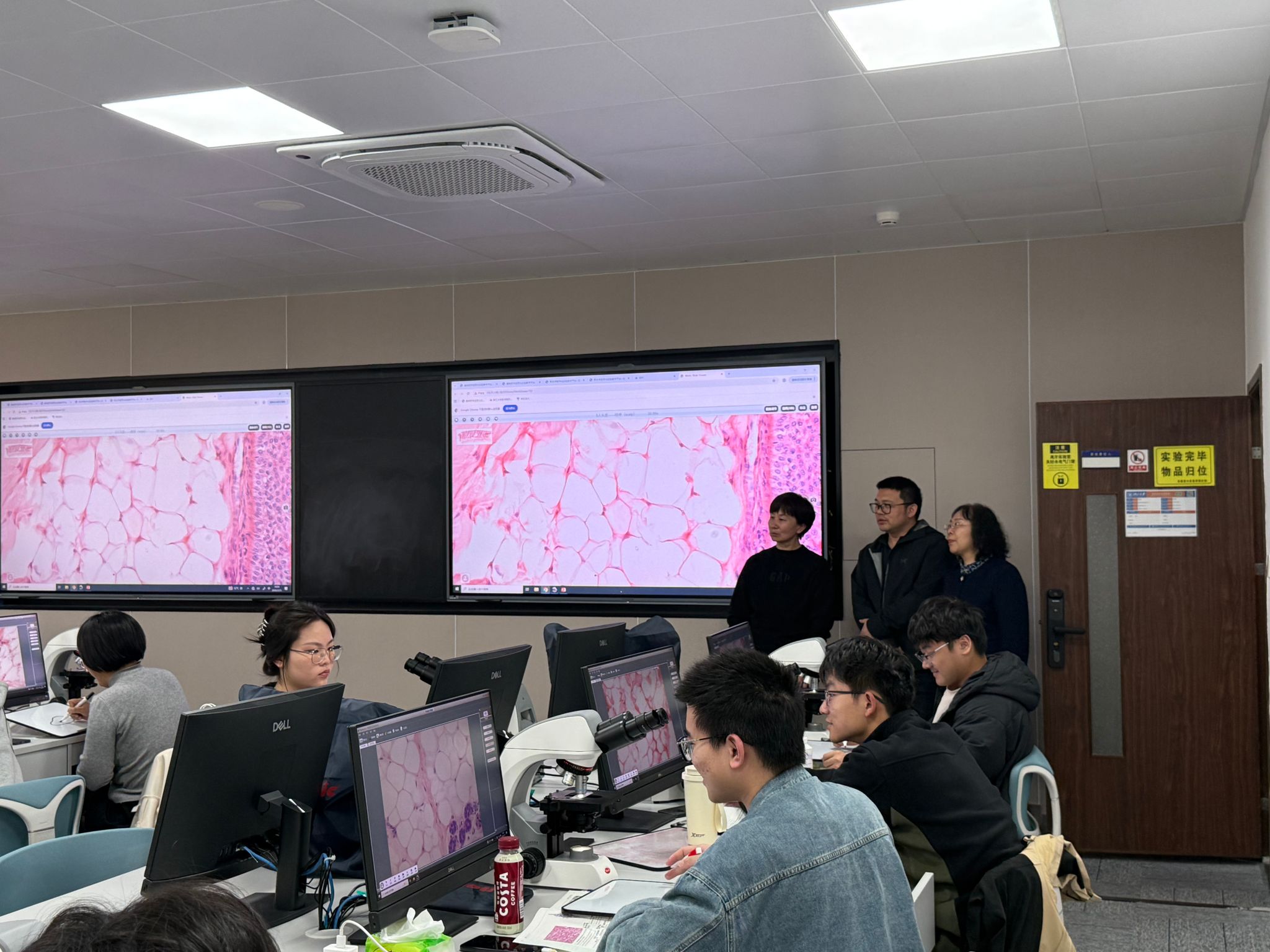 基础医学实验教学中心,通过现场交流,详细了解了该中心的实验课程设置、智慧实验室升级改造、教学平台运维管理等具体情况。