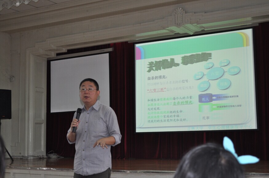 二楼多功能报告厅举办了一场精彩的心理健康教育讲座。本次讲座邀请的主讲人是校心理健康教育指导中心督导师胡远超博士。2014级全体研究生新生参加了讲座。本次讲座由研究生办公室主任丁红枫主持。