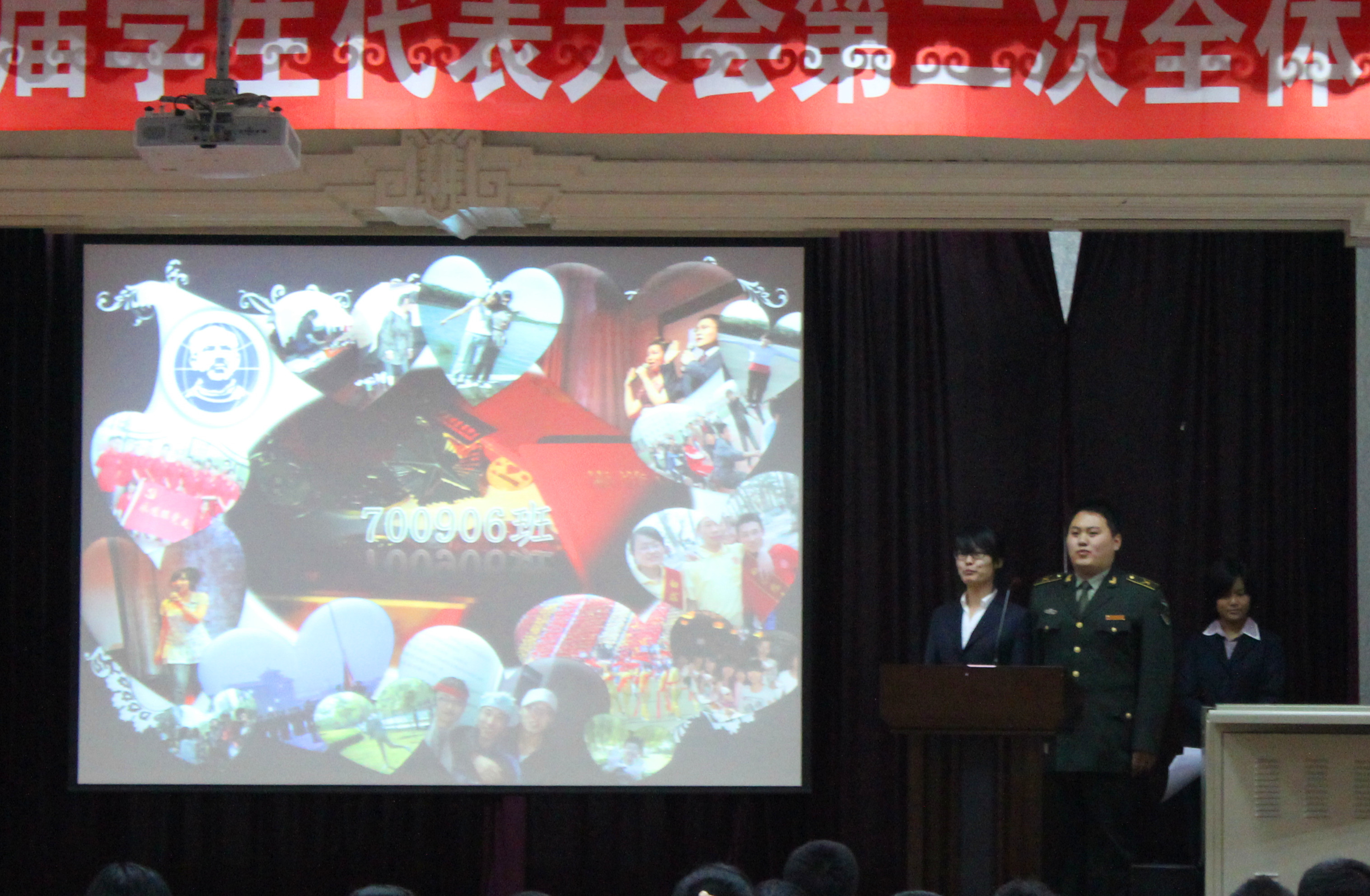 本次会议主要内容为评选2012年“白求恩优秀班级”和“白求恩十佳大学生”。首先进行的是 “白求恩优秀班级” 的评选,来自2009级、2010级的10个班级参加评选,参评班级的班长、团支书依次上台进行答辩,最终700906班、701005班、701006班、700908班和701003班被评选为2012年“白求恩优秀班级”。