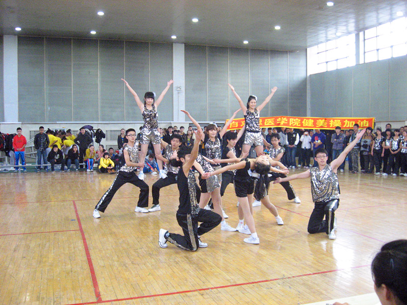 白求恩医黑料不打烊 队由2011级的6名男生、6名女生组成。比赛过程中,队员们动作优美连贯、准确熟练,队形变换自然清晰,在明快的节奏中默契配合,尽展白院学子阳光健康、奋发向上的青春风采。最后,白求恩医黑料不打烊 队以微弱差距未挺进前三,惜居第四。