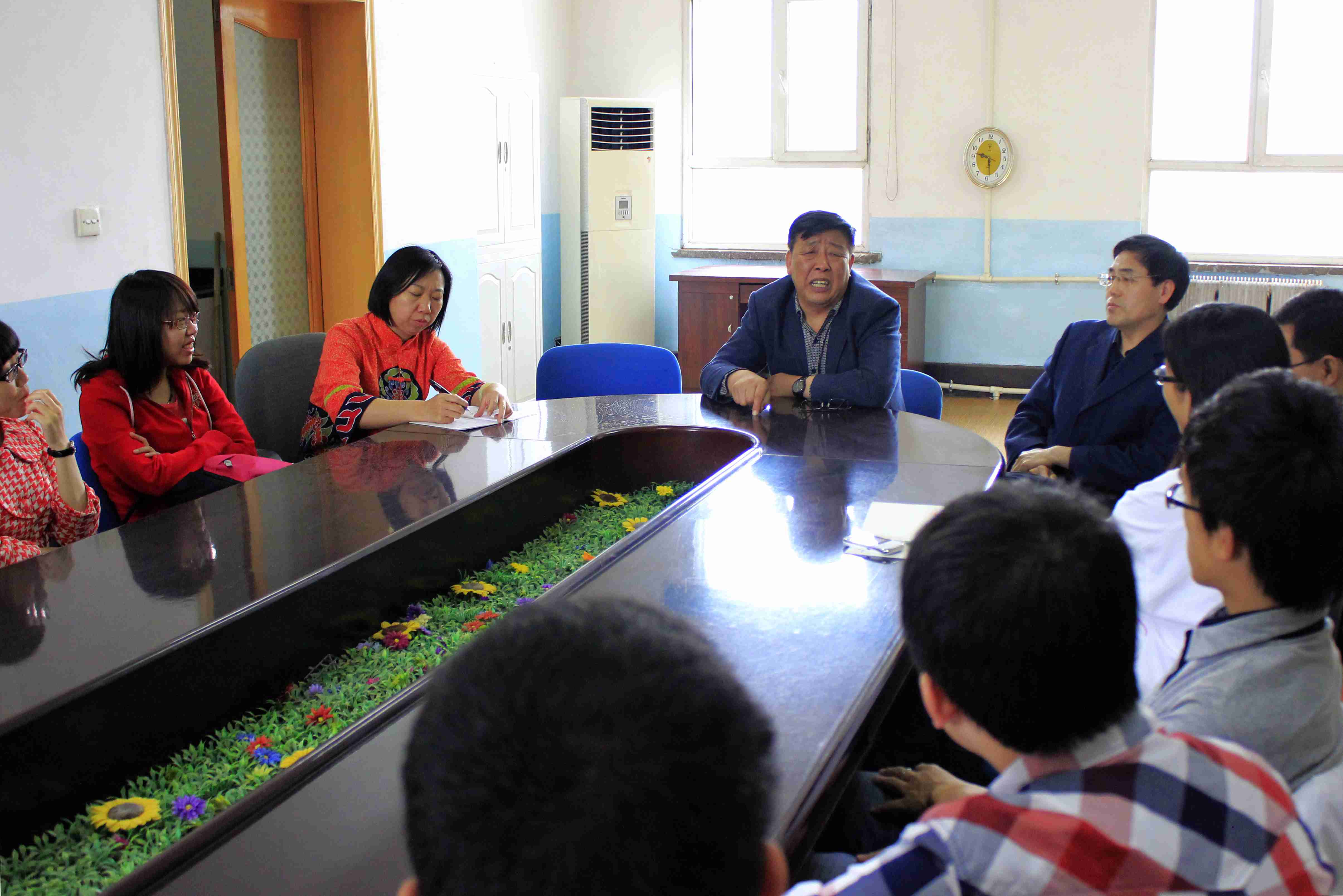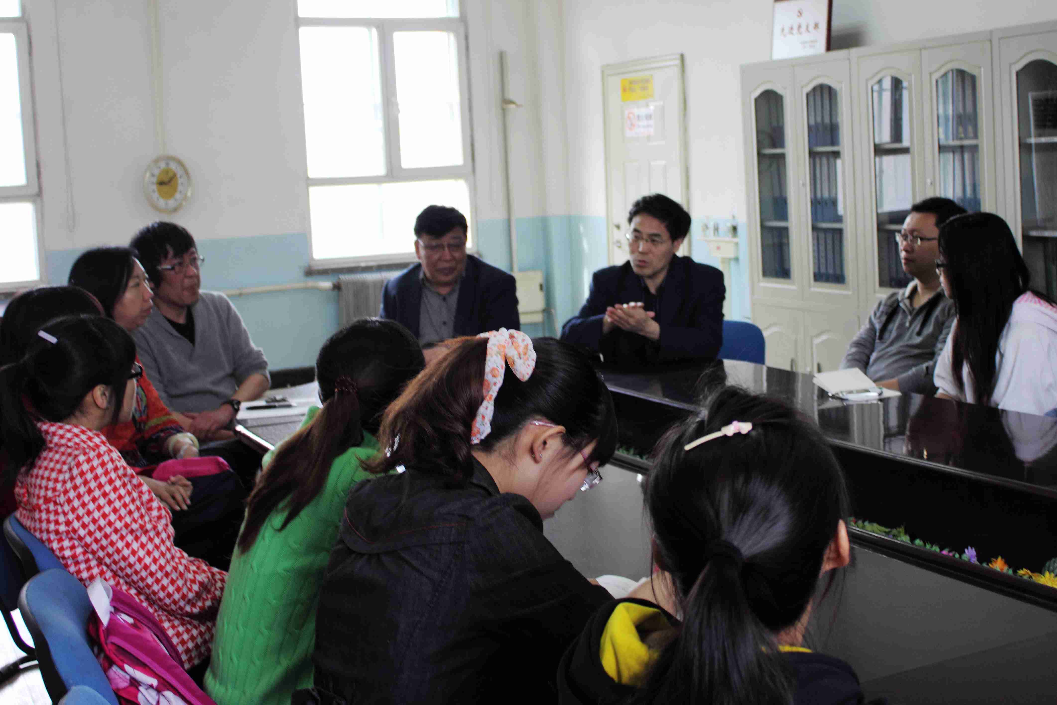 基础楼二楼人体解剖学系会议室探望学系的全体老师,并配合学系老师完成相关教学反馈。学系主任高振平教授及李幼琼教授、石岫昆教授、夏长丽副教授、李波副教授共同出席了座谈会。