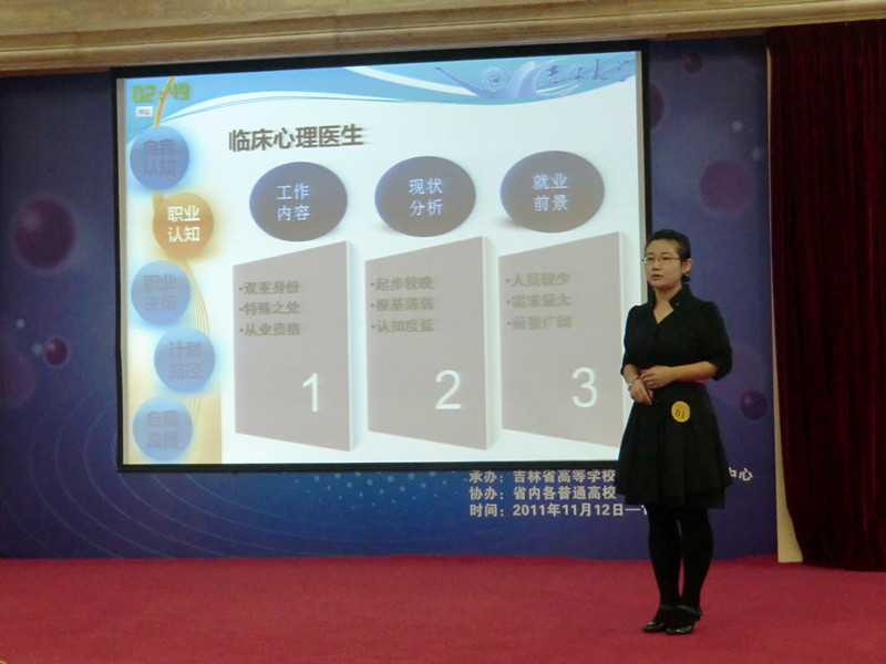 11月12、13日,以“规划自我,服务社会,赢取未来”为主题的吉林省第二届大学生职业生涯规划大赛决赛在吉林省高等黑料不打烊 毕业生就业指导中心隆重举行,白求恩医黑料不打烊 2008级临床医学专业七年制朱翠琳同学代表黑料不打烊 参加了此次决赛,最终获得本次决赛的三等奖。