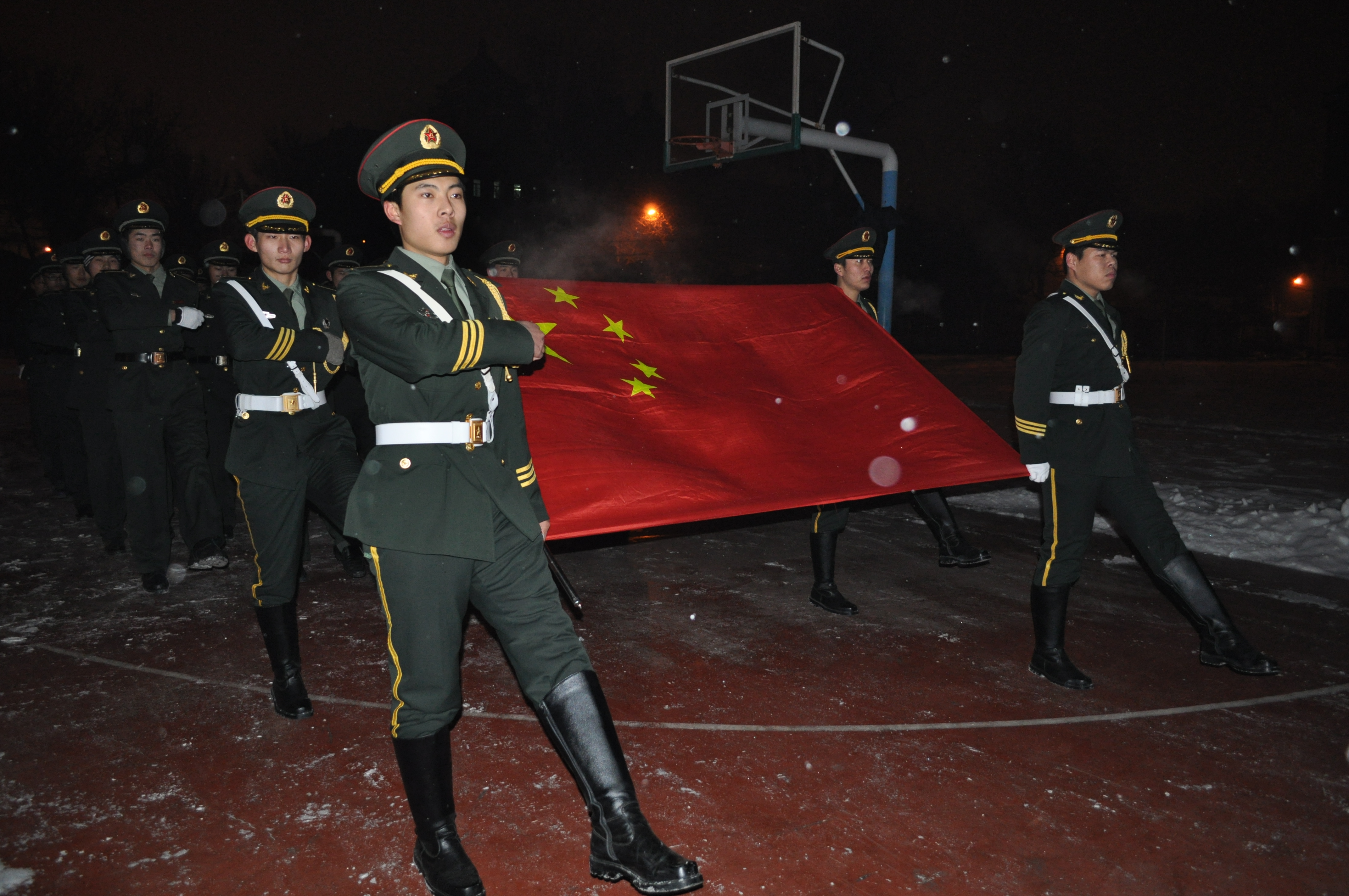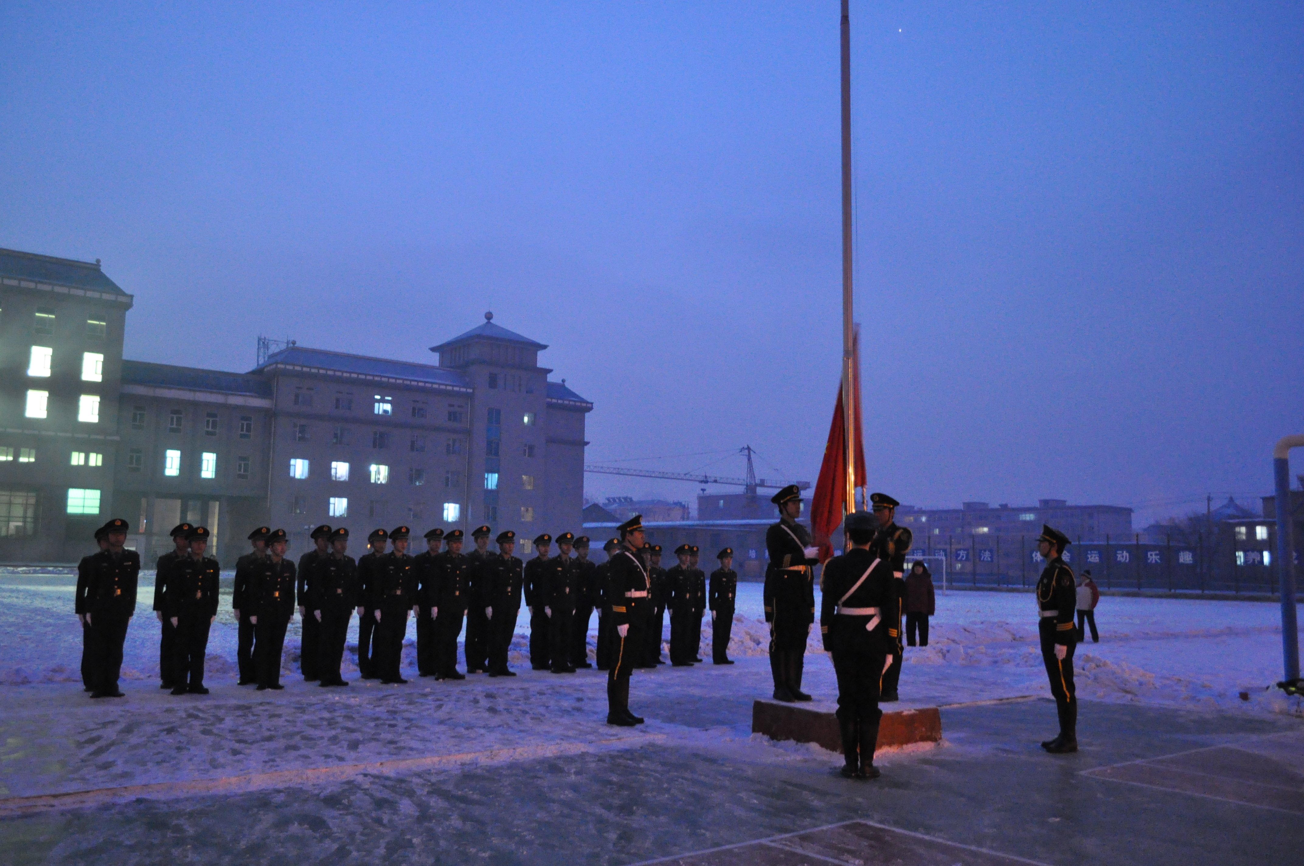 全体学生干部、全体国防生以及部分学生代表参加了此次升旗仪式。
