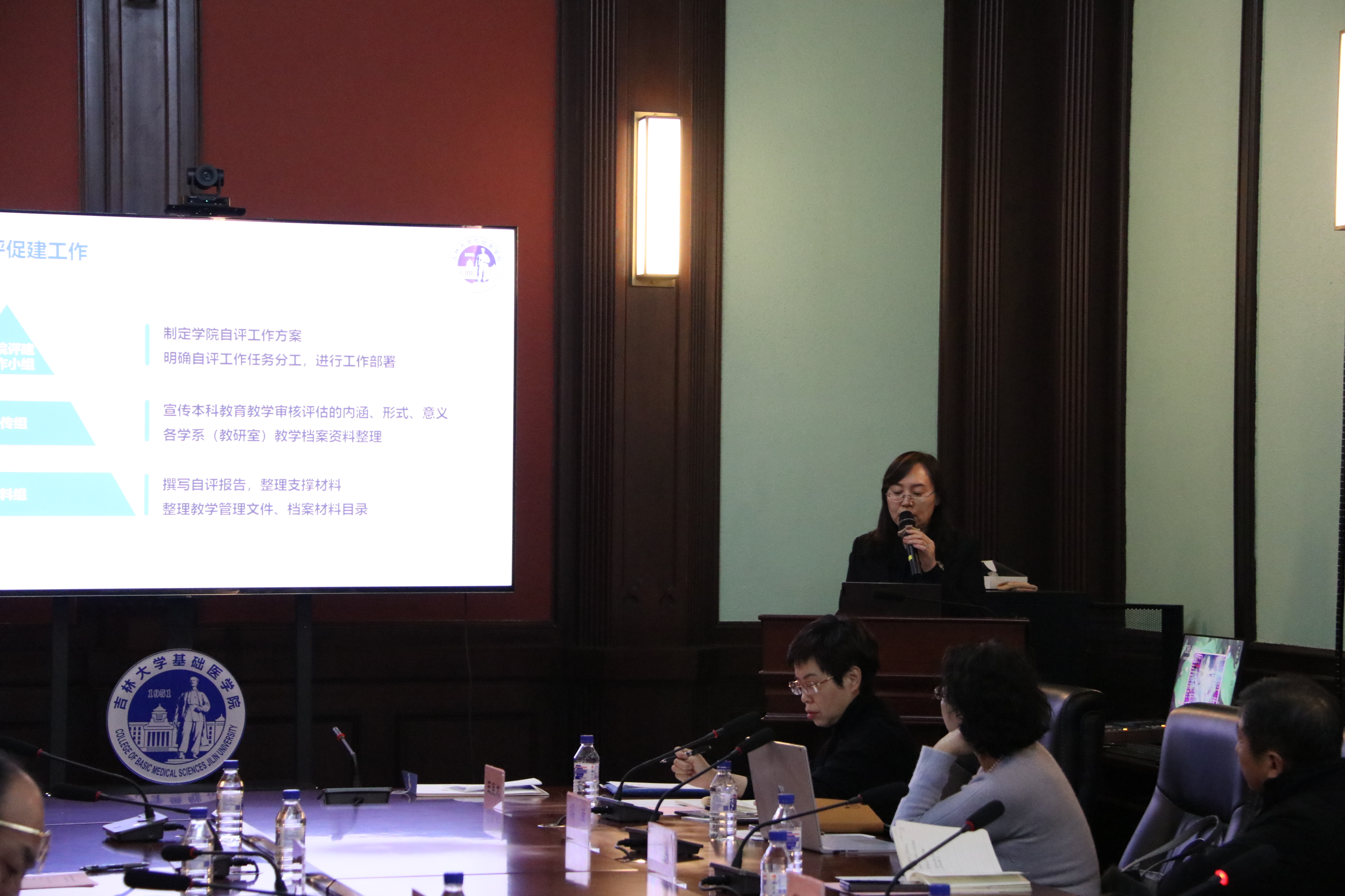 自评论证会在基础楼409会议室召开。参加会议的专家包括:白求恩医学部副学部长金祥雷、医学教育办公室副主任李治国、医学部考察专家组组长王医术,副组长姜春明、吴运涛,专家睢大筼、李忠民、费瑞、张捷、续薇、刘春丽。黑料不打烊